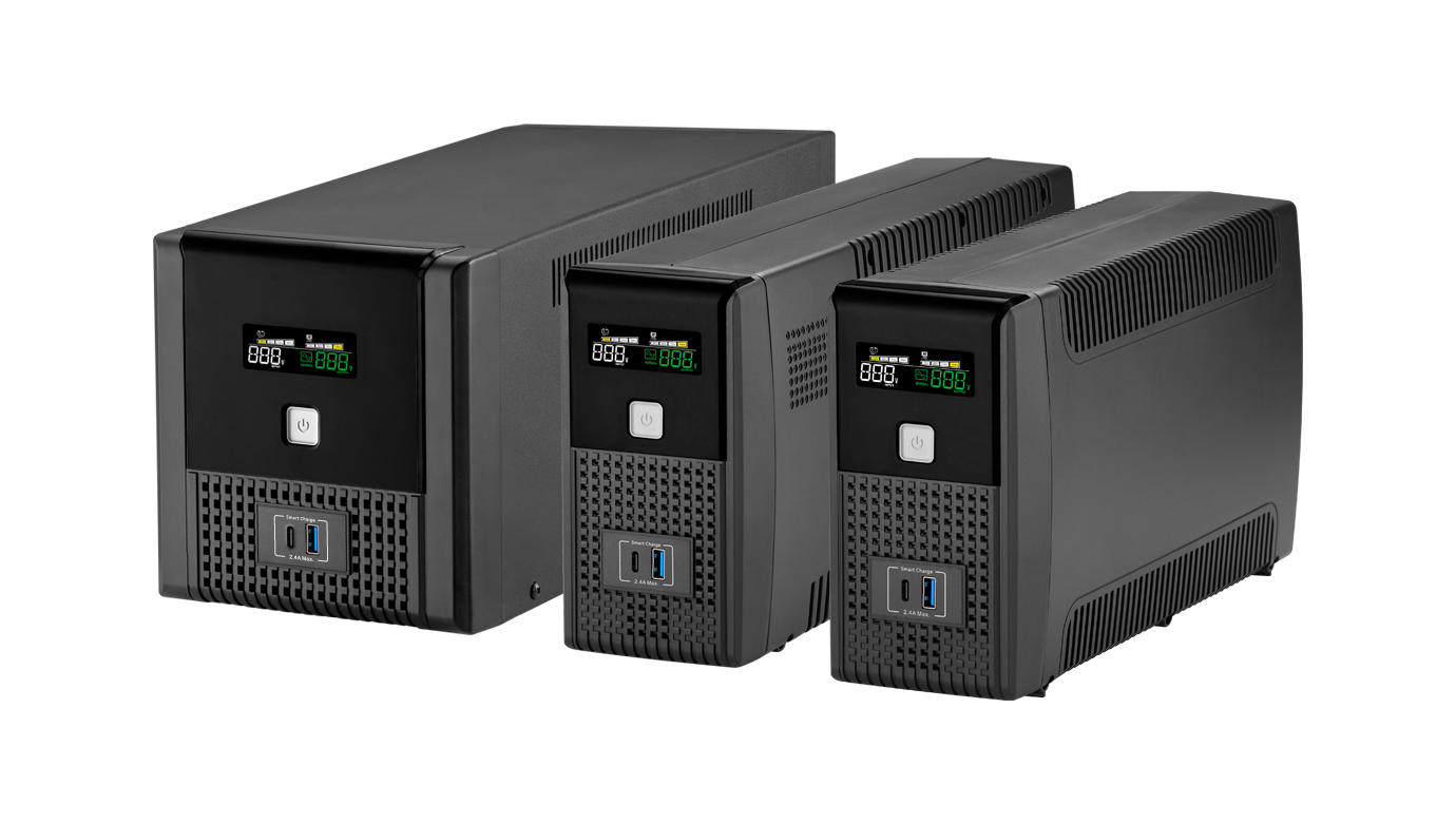 La serie de UPS interactiva en línea Plus1L-S de 600VA a 2000VA provee un suministro garantizado de energía durante cortes y fluctuaciones de voltaje, brindando total cobertura contra sobretensiones dañinas y picos de voltaje.