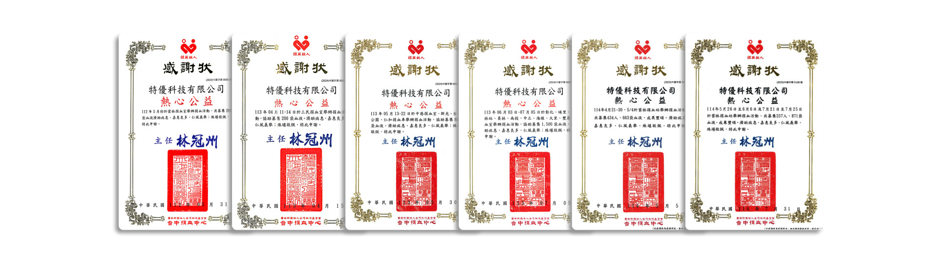 台灣愛心公益活動 巴拿馬愛心捐血活動 瓜地馬拉愛心捐血活動 台灣愛心公益活動 日期 地點 募集數量(袋) 1 112.05 雲林捐血室 200 2 113.04.11 ~ 04.14 三民捐血室 200 3 113.05.13 ~ 05.22 中港捐血室、新光、台中公園、仁和捐血車 800 4 113.06.03 ~ 07.05 彰化、埔里、雲林站、員林、南投、中正、海線、大里、豐原捐血室 1,500 5 114.04.21 ~ 04.30 / 05.04 雲林捐血站 663 6 114.05.26 ~ 06.06 / 07.21 ~ 07.25 雲林捐血站 871 特優熱心做公益!攜手協助募集血液!特優科技有限公司長期致力於參與社會關懷,多次合作經銷商及台灣血液基金會,以實際行動做出貢獻、回饋社會;我們將會持續積極參與捐血活動,於各區域捐血室舉辦的捐血活動,協助募集血液,也感謝捐血者們無私的奉獻,和我們一起實現傳達互助的理念,幫助更多需要的人! 捐贈火災報警器1000個!保護一千個家庭!特優科技有限公司配合當地政府活動,以提升居民居家的安全為目的,招募地方五家善心企業,共計聯合捐贈住宅警報器1800只,包含特優科技回饋捐贈1000只,可保護上千個家庭,此捐贈活動將規劃以弱勢族群為優先安裝對象;特優科技將會持續回饋社會一同為當地社區做出貢獻。 巴拿馬愛心捐血活動 -2023年- 捐獻行動捐獻愛: 特優與你,團結予血 ! 血液,聯繫著你我,是每個人生活在世上都需要且不可或缺的東西。一直以來,特優科技除了為大眾打造更穩定的用電環境,同時也長期致力於國內外的社會公益與關懷,而這次我們向海外伸出援手,合作當地的經銷商及公益團體,為在地血庫短缺的困境盡一份心力。 為了喚起有關社會大眾對捐血重要性的公共意識,並齊心一同捲起衣袖參與捐血,我們在巴拿馬與當地公益團體Sangre Panamá及Publimovil公司聯合舉辦了捐血活動。 捐血者捐獻自己的血液,特優科技則贊助優質電力產品,提供民眾電力的保護,能夠有榮幸參與這樣富有意義的活動我們也感到十分開心! 瓜地馬拉愛心捐血活動 -2024年- 一同獻血,照亮生命: 與特優一起作伙來捐血 ! 捐血者的行為就像是向他人拋出一條救命繩,從此彷彿與素昧平生的陌生人有了一種無形的連結,將某個人從漆黑冰冷的水中拉出,使其能夠沐浴在每個人都值得擁有的溫暖陽光下,而我們也在瓜地馬拉與紅十字會攜手共邀當地民眾一起捐血拯救他人的生命。 DHL快遞公司長期致力當地的志工服務,這次他們也依然沒有缺席如此有意義的活動。一位參與此次捐血的DHL快遞人員和我們分享了他當下的心情,他告訴我們這是他第一次捐血,過去他並不知道原來捐出的一小袋血液竟能夠為他人的生活帶來這麼大的改變;正如身為一個快遞,他的工作能夠不受國界的限制,串起人們的生活圈,儘管他無從得知他捐出的那袋血袋旅途的終點會是哪裡,但他深信那將成為他與某個人之間的一種正向連結;想到這裡,他感到很高興能夠獲得如此寶貴的經驗,也覺得心裡暖暖的。 多虧了捐血者們的無私奉獻,我們的理念才能成功地傳達給大眾,並且幫助到真正需要我們幫助的人。於世界來說,特優科技只是付諸了一個小小的行動,但我們聚在一起參與捐血活動的短暫時光,卻能因此守護某個人的健康和幸福的日常,也希望這樣的行動能夠成為一片小而重要的拼圖,幫助到那些需要血液的人,從此完整他們的人生拼圖。 今後特優科技也會繼續為這個世界提供更好的電力環境,偕世界一同創造更友善的捐血環境! BACK PAGE